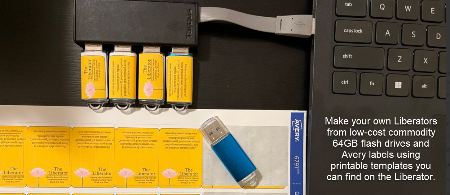 Make it Viral! You are authorized and encouraged to make copies for your friends and family! Bulk 64GB flash drives on E-bay and Amazon are selling for around $35 for 10 drives. Every Liberator comes with instructions and cool label templates to wrap commodity USB drives so they look cool.