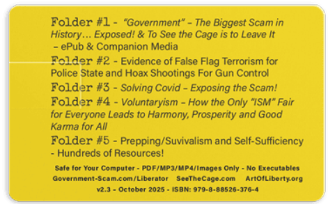 Please let me know in the comments (or by e-mail to Evidence@ArtOfLiberty.org) what damning pieces of incontrovertible, iron-clad evidence of “government” illegitimacy and criminality should be included in our upcoming 128GB V3 Liberator! It can be articles, documents, short videos or documentaries!
