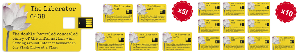 Make it Viral! You are authorized and encouraged to make copies for your friends and family! Bulk 64GB flash drives on E-bay and Amazon are selling for around $35 for 10 drives. Every Liberator comes with instructions and cool label templates to wrap commodity USB drives so they look cool.