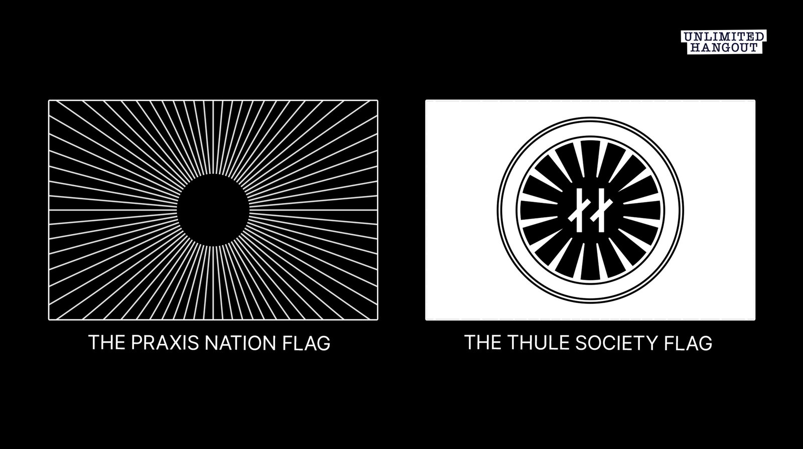 That the Praxis Nation flag looks like the Black Sun is possibly the result of a remarkable string of coincidences that just happen to coalesce in Greenland. It is also not unthinkable that it is another example of diverting Praxian tomfoolery. Nonetheless, the apparent unpalatable symbolic reference exists.