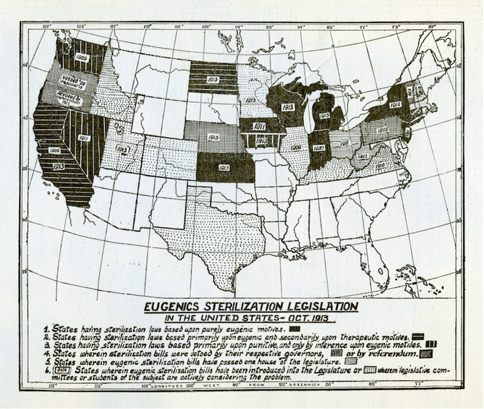 Over 60,000 people were forcefully sterilized in the United States in the 20th century. In total, 32 U.S. states passed sterilization laws between 1907 and 1937, and surgeries reached their highest numbers in the late 1930s and early 1940s. One study from North Carolina found that black women were sterilized at three times the rate of white women and more than 12 times the rate of white men. Sterilization policies continued into the 21st century, where between 1997 and 2010, unwanted sterilizations were performed on approximately 1,400 women in California prisons, as one example. [ii]