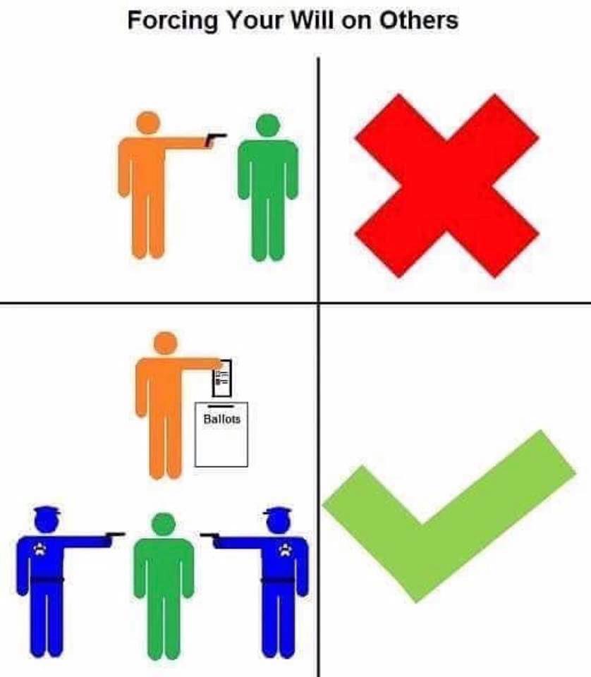 The weirdest thing about the scam of “Government” is that ANYONE can understand its illogical nature and immorality. Here are the basics… In memes!
