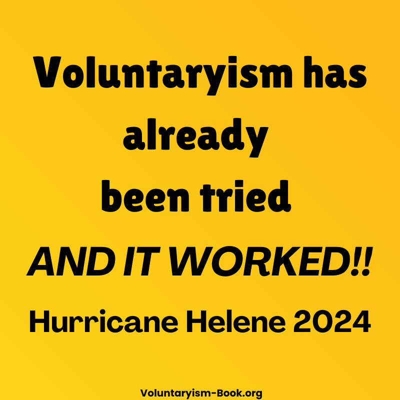 While the federal “government” was wasting a trillion dollars and making the situation worse, local individuals, non-profits, and churches have, quite literally, saved the day. While this article spotlights one specific and highly sucessful local relief operation, the entire hurricane relief effort has been a textbook case of voluntaryism, where people from all walks of life have banded together to do what they can to support the efforts to rebuild communities lost to the hurricane. The hurricane wiped out an estimated 73,000-100,000 homes in Western North Carolina and Eastern Tennesee, displacing an estimated 200,000 people, many of whom are still living in tents and flooded homes.