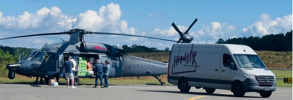 North Carolina manufacturer, Hoodsly, that makes kitchen range hoods, began fuelling and loading private helicopters with relief supplies. Company founder, Kevin Garrison, organized a Go Fund Me that raised $1.2 million.