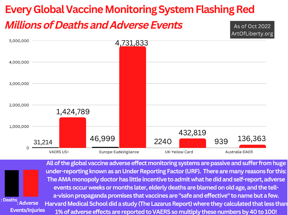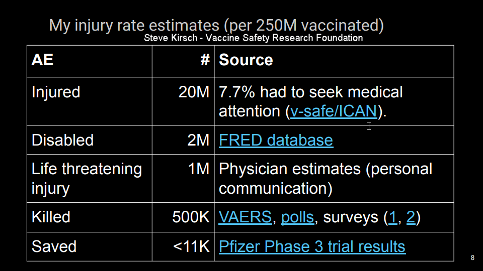 [clvi] Steve Kirsch’s Slides Showing US Estimates of Death & Adverse Events + Under Reporting Factor: Download his full slide deck with active links from: The Liberator Dropbox: https://www.dropbox.com/s/jw5yxhgyvhu9mm9/Steve_Kirsch_Slidedeck_on_Vaccine_Deaths.pdf?dl=0
