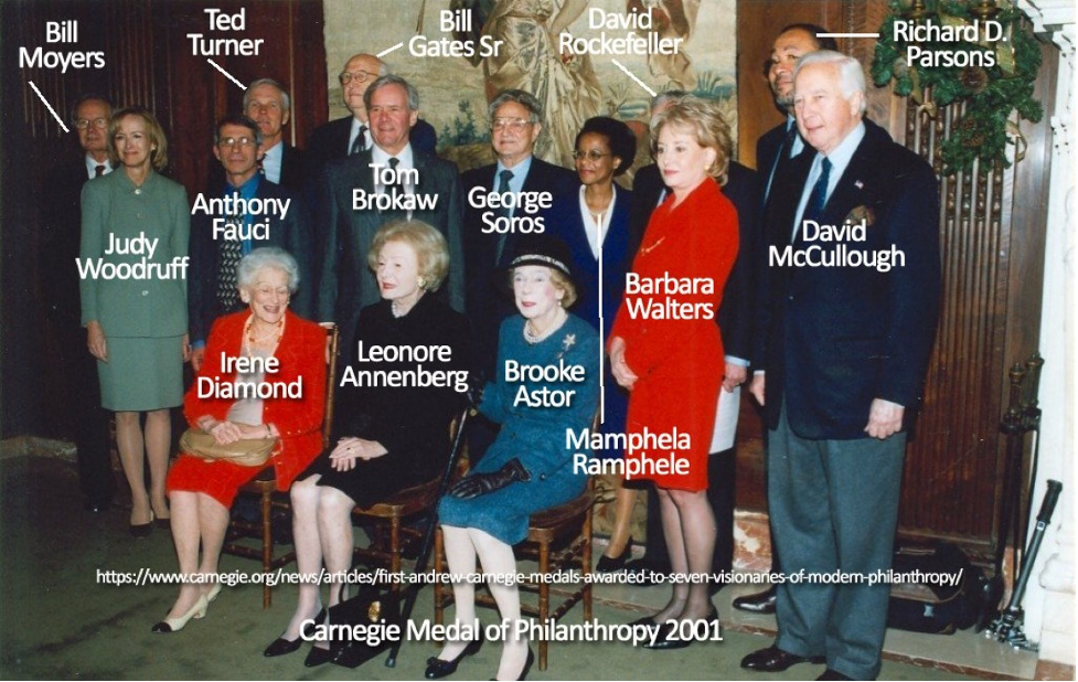 October 12th, 2001 - Anthony Fauci, director of the National Institute of Allergy and Infectious Diseases and lead member of the White House Coronavirus Task Force, is a presenter at an awards ceremony of the Eugenics funding Carnegie Corporation where the common denominator of the award recipients is that they are the leading funders of the modern eugenics movement including: David Rockefeller, The Gates Family (represented by Bill Gates Sr.), George Soros and Ted Turner. This author breaks down the background of these and other Covid-19 suspects in the article: The Covid-19 Suspects and Their Ties to Eugenics and Population Control/Reduction.