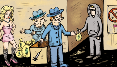 First of all, even private street gangs and organized crime today exist mainly because of government, not in spite of it. Notice how many gangs today get their funding from trading in illegal “black markets”—drugs, gambling, illegal immigration, prostitution, guns, etc.—which are very lucrative, as well as very dangerous, because of government “laws.” In a free society, thugs and thieves—individually or in gangs— wouldn’t have any “black markets” to take over.