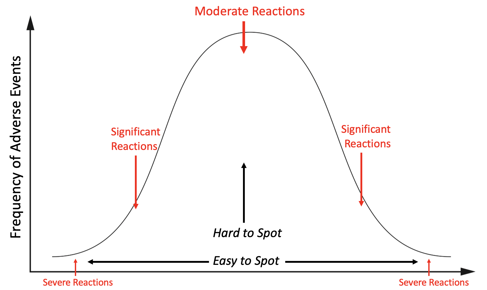In toxicology, you will typically see severe and extreme reactions occur much less frequently than moderate reactions: