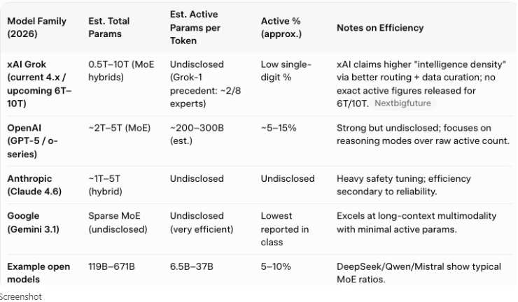 Training data quality and “intelligence density” (xAI claims higher density per gigabyte).
